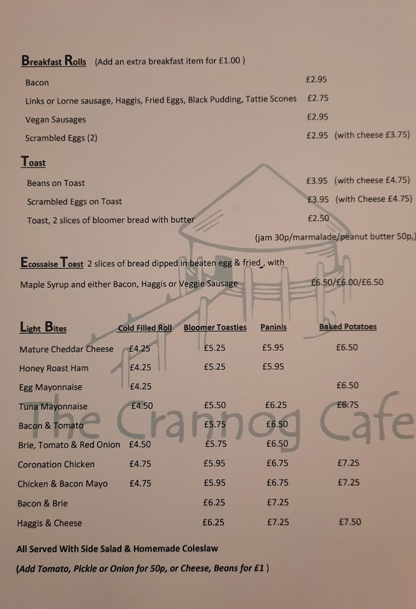 Located on Linlithgow's bustling High Street, The Crannog offers a cozy retreat for those seeking delicious, homemade food. The menu features a delightful array of options, from hearty homemade soups accompanied by bloomer bread or cheese scones, to enticing combinations like the Soup and Toastie or the Soup and Panini Combo. Customer favorites include the haggis and cheese toastie, and the comforting ham panini, praised for their flavor and quality.